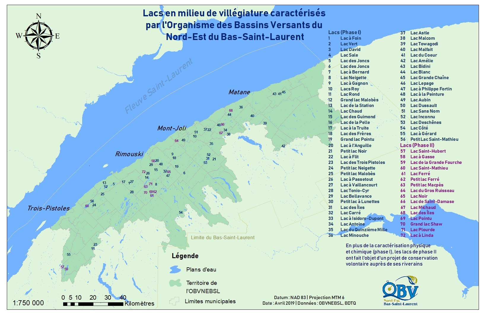 Les différents projets que nous avons réalisés nous ont permis de recueillir et d'analyser les données de plusieurs lacs situés dans la zone du Nord-Est du Bas-Saint-Laurent.