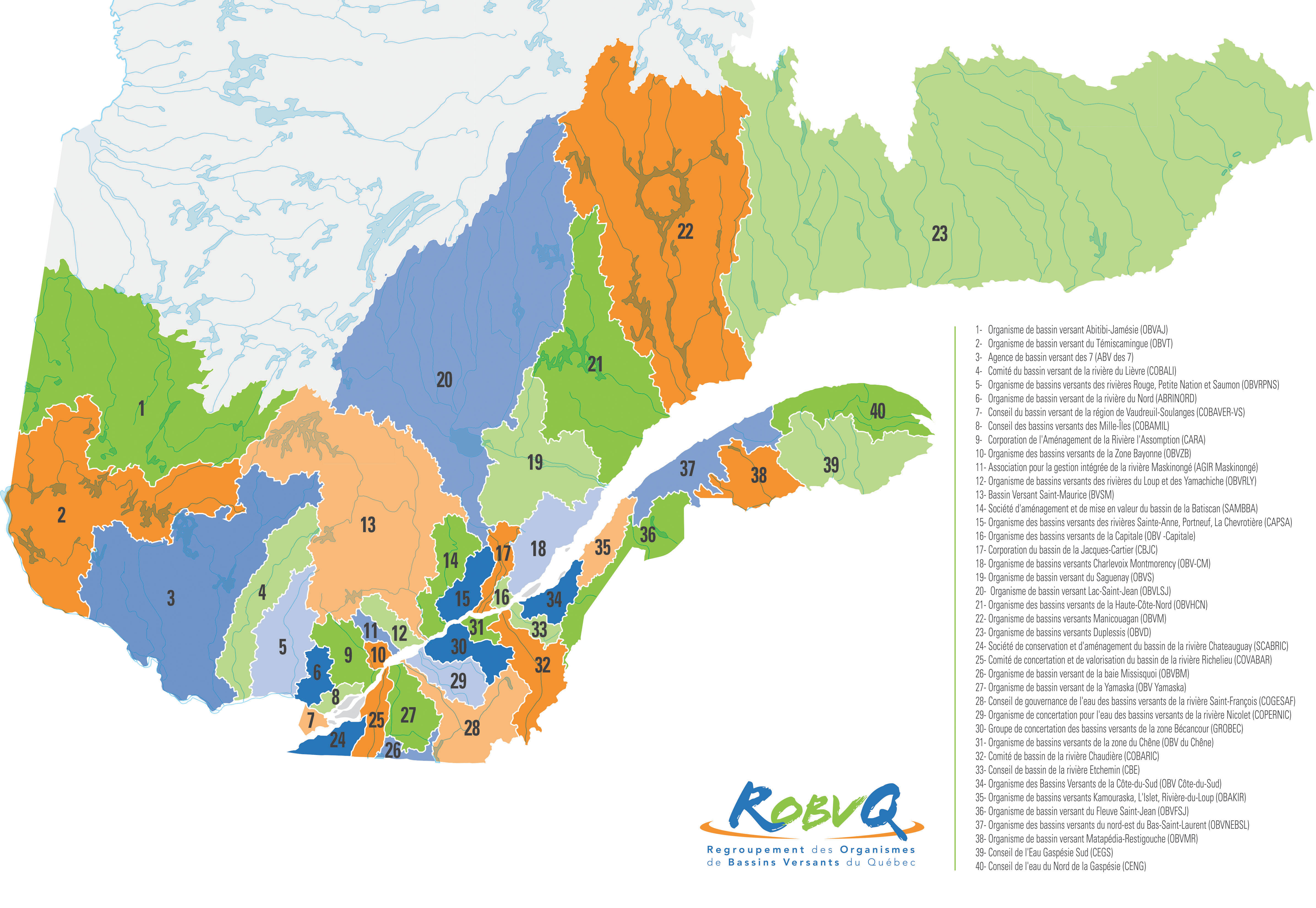 Les OBV du Québec ont le mandat de mettre en œuvre la gestion intégrée et concertée de l’eau par bassin versant sur des unités hydrographiques variant de près de 1 000 km² à 165 000 km². Des mécanismes de concertation des utilisateurs de l'eau et des divers milieux intéressés nous permet d'éleborer un Plan directeur de l'eau et d'en promouvoir la mise en oeuvre.