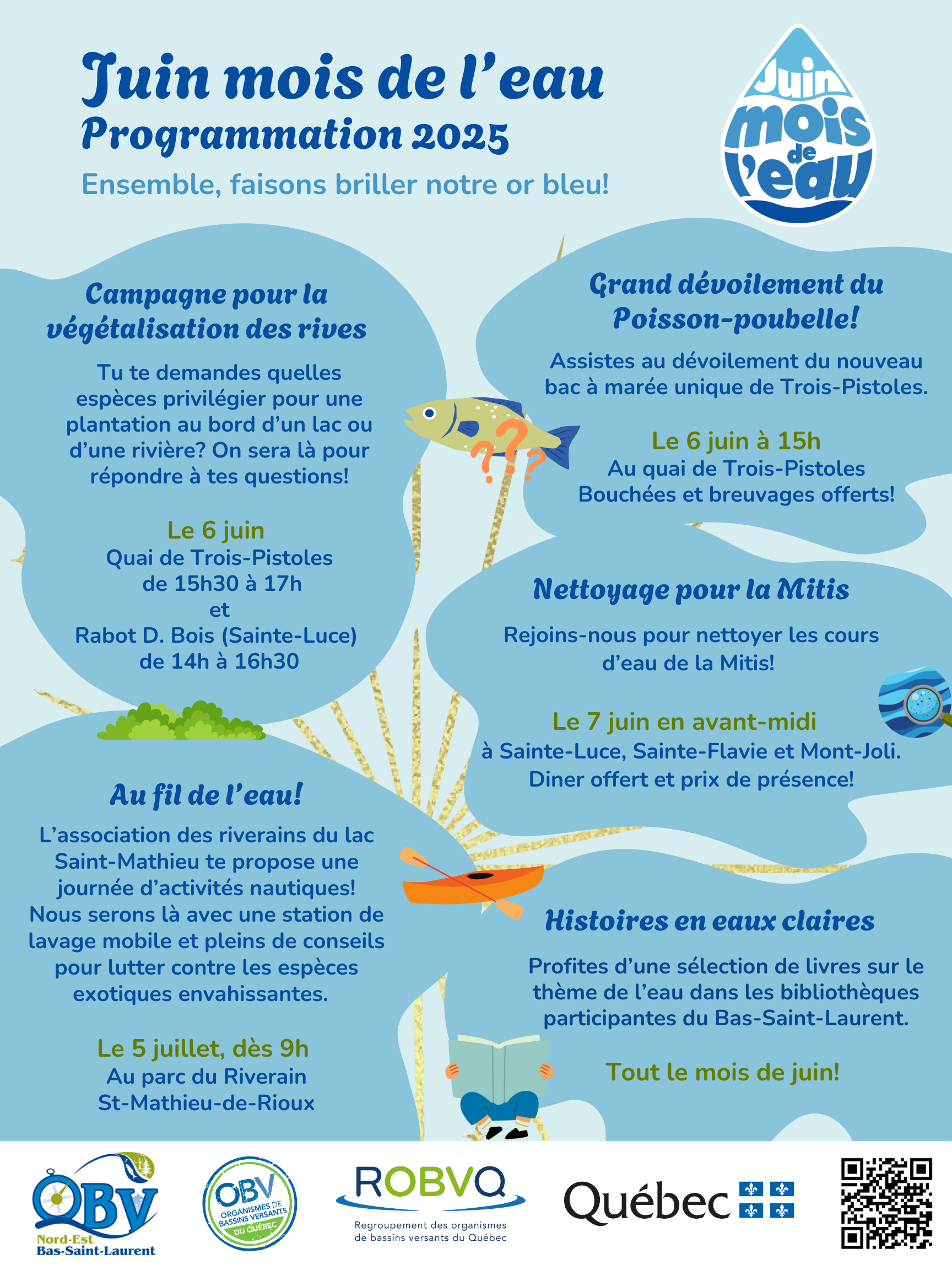 Durant le mois de juin, l'OBVNEBSL et de nombreux partenaires vous proposent des activités en lien avec l'eau, afin de promouvoir sa grande importance et de créer des opportunités d'être mieux informé sur les risques qui l'entourent.